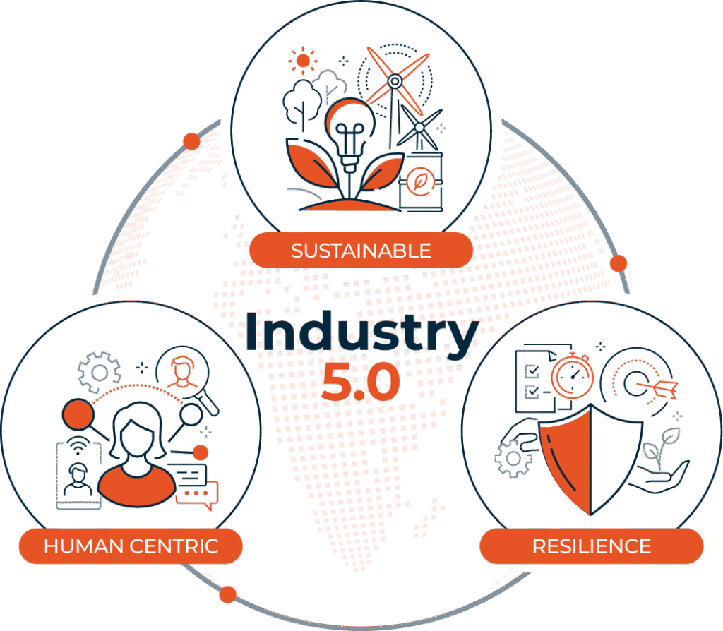 صنعت 4 بر اتوماسیون و حذف دخالت انسان تمرکز داشت، اما صنعت 5 بر بازگشت انسان و همکاری او با رباتها (Cobots) برای دستیابی به شخصیسازی و پایداری تمرکز دارد.